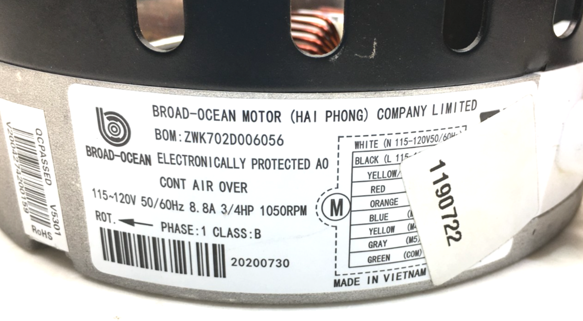 BROAD-OCEAN ZWK702D006056 ECM Module ONLY 1190722 3/4 HP 115/120V used #W224