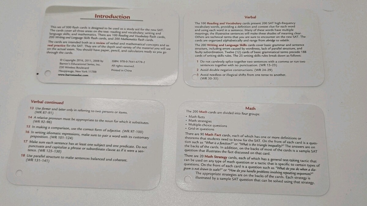 Barron's NEW SAT Flash Cards: 500 Flash Cards to Help You Achieve |