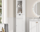 Bathroom Storage Tower, Narrow Linen Cabinet with Door and Drawers, Tall Bathroom Storage Cabinet for Small Spaces, White