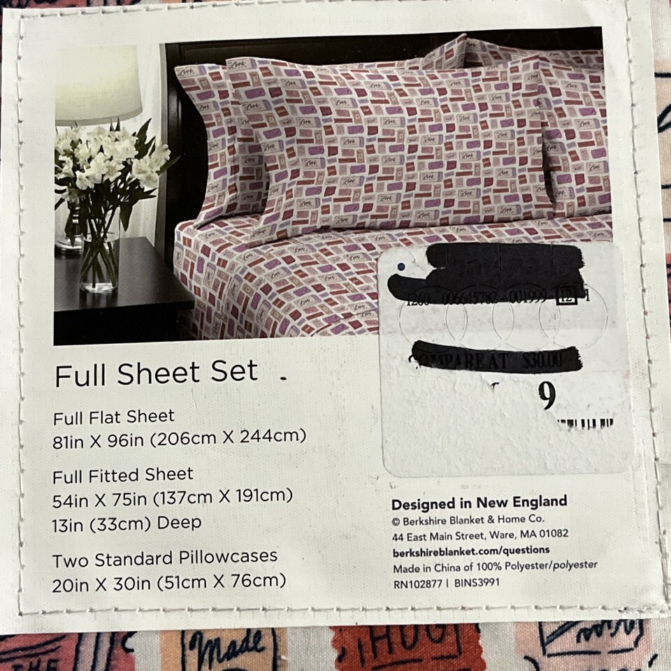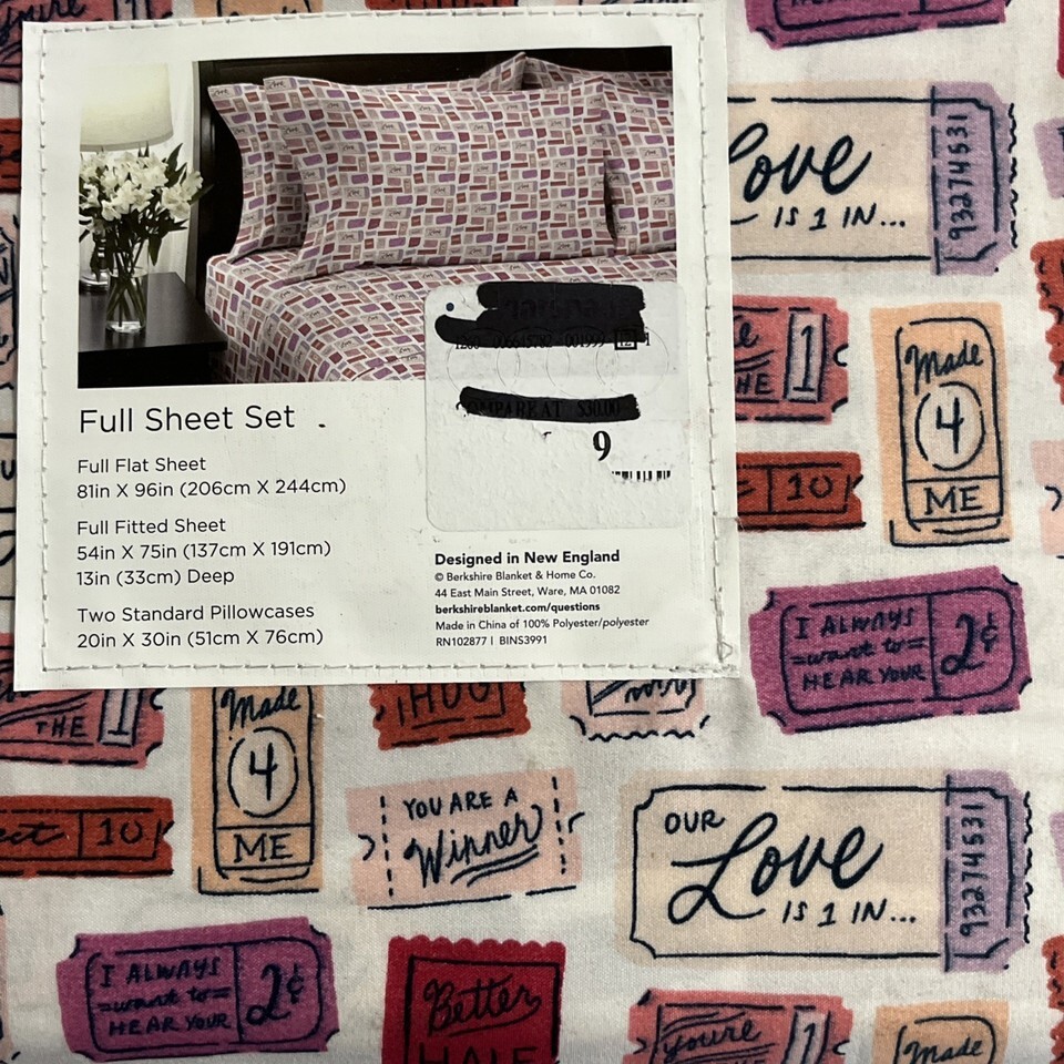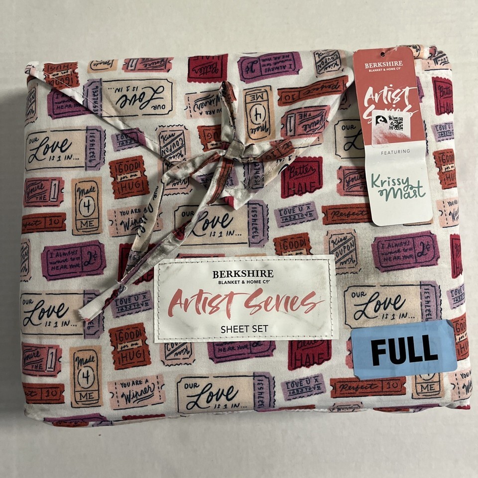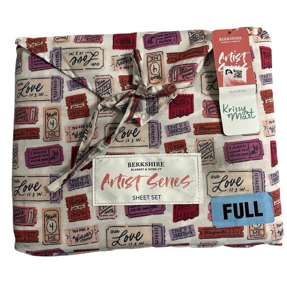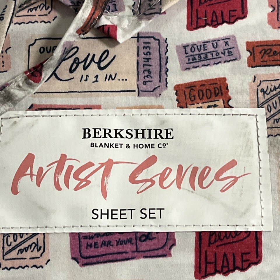 - Berkshire Sheet Set Artist Series Pink Love Valentines Tickets Novelty Set Full