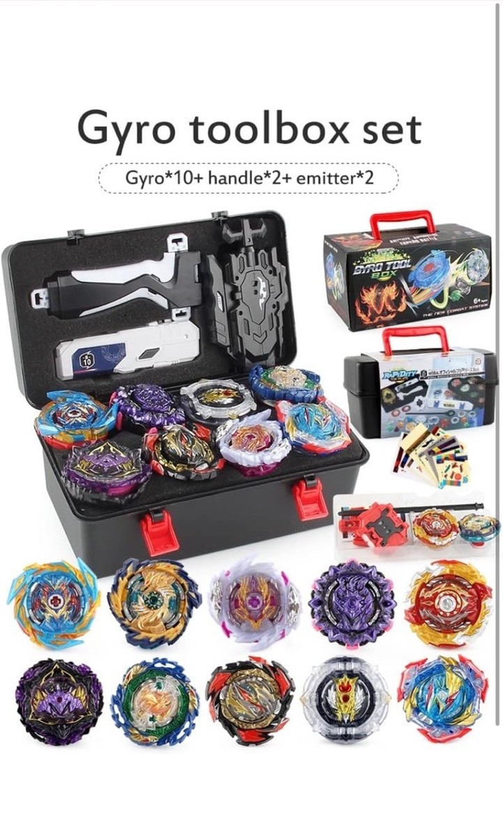 The Bey Battling Burst Gyro Bay Blade Toy Set features a Bay Blade 10 Toolbox Set with 10 Beys and 2 Launchers. Made of aluminum, this Beyblade set is designed for children who enjoy the sport of boxing. The unisex character of Blade and fashion theme make it appealing to both boys and girls. The boxed packaging ensures easy storage and transport for this action figure set that is perfect for Beyblade enthusiasts.