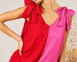 BiBi Shoulder Ribbon Tied Contrast Tank