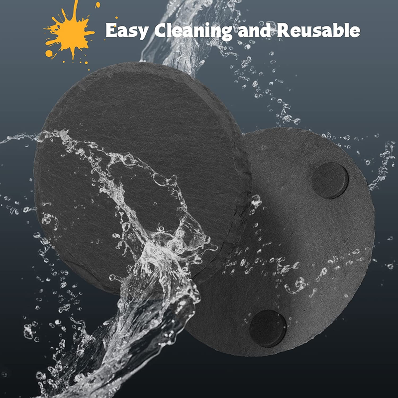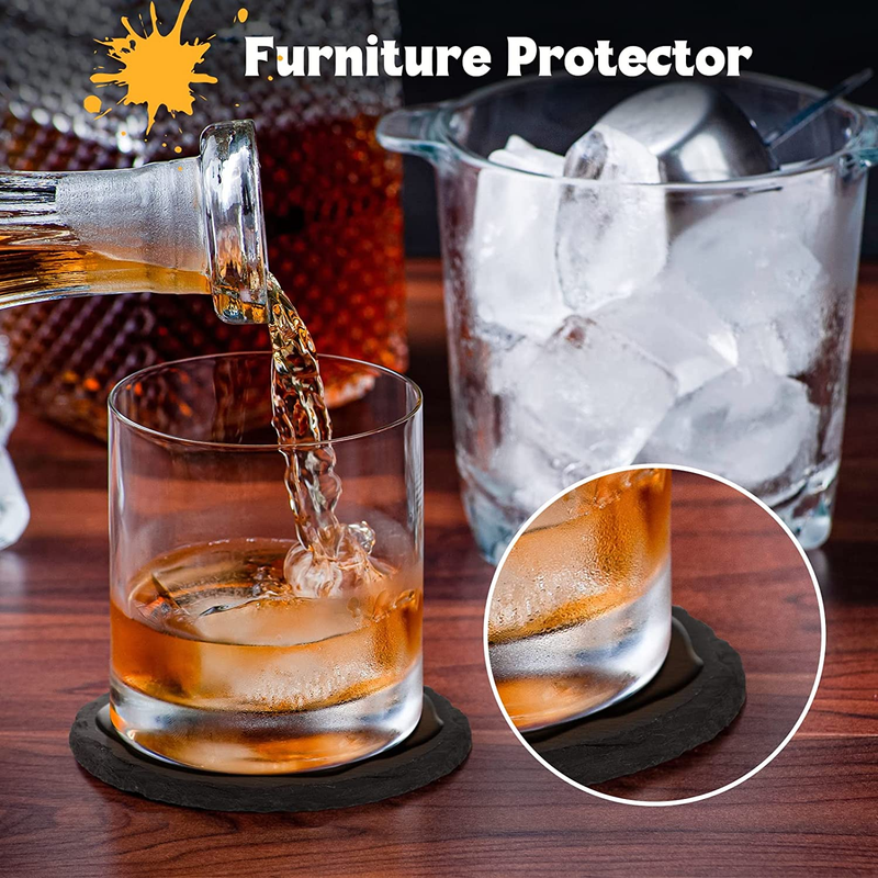 Black Slate Coasters for Drinks - Set of 6 - Anti-Scratch Drink Coasters with Ho