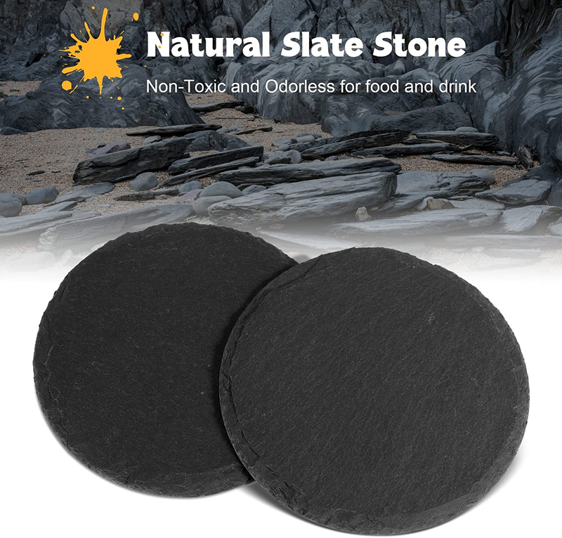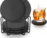Primary image for Black Slate Coasters for Drinks - Set of 6 - Anti-Scratch Drink Coasters with Ho