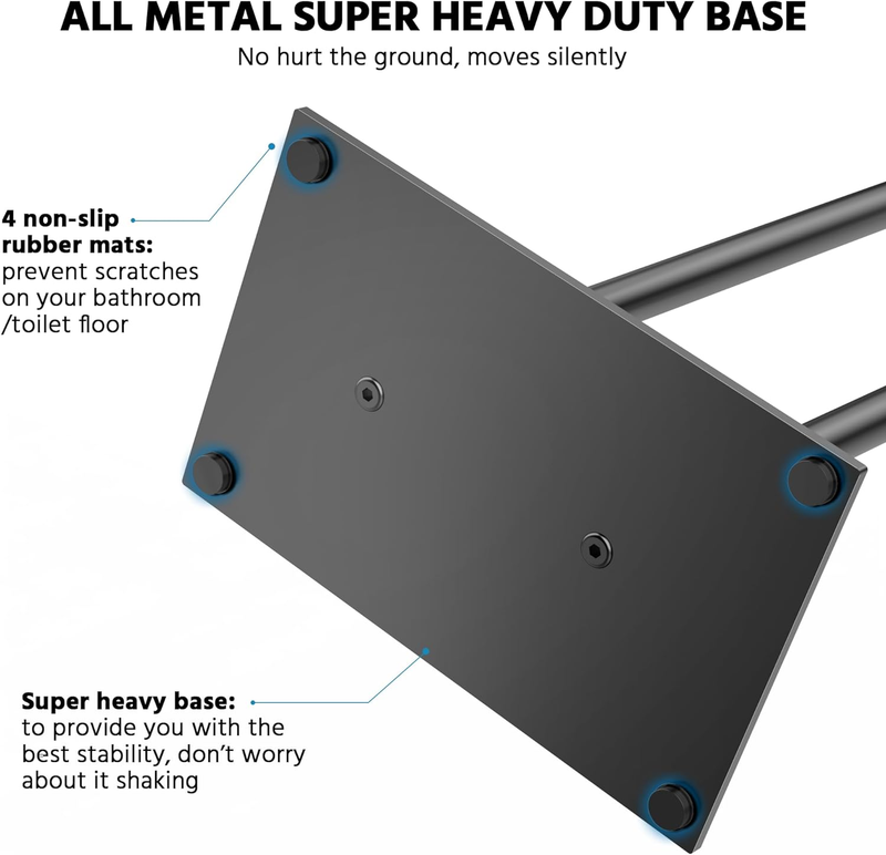 ?Heavy Duty Base? Up to 2lb base is an important factor to keep the toilet paper holder stable. The non-slip rubber pad at the bottom to make it more stable and will not scratch your ground during the move.