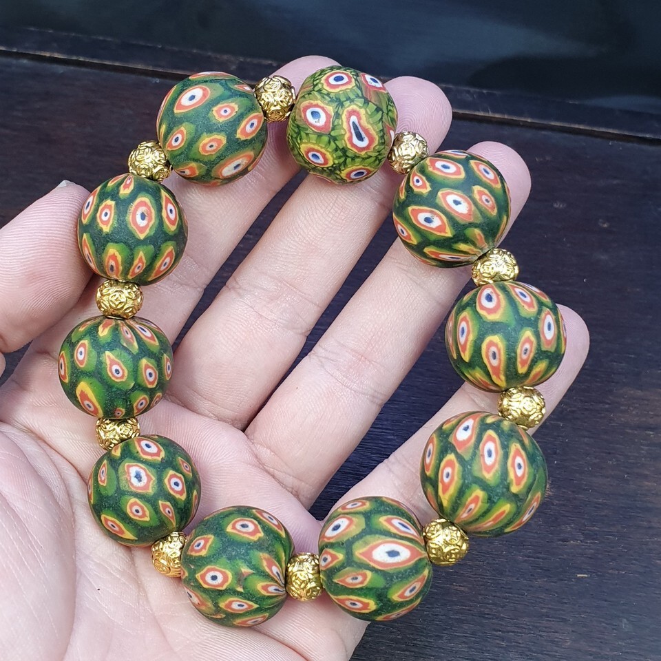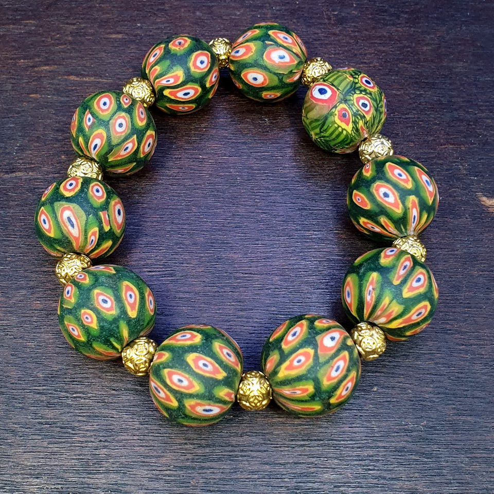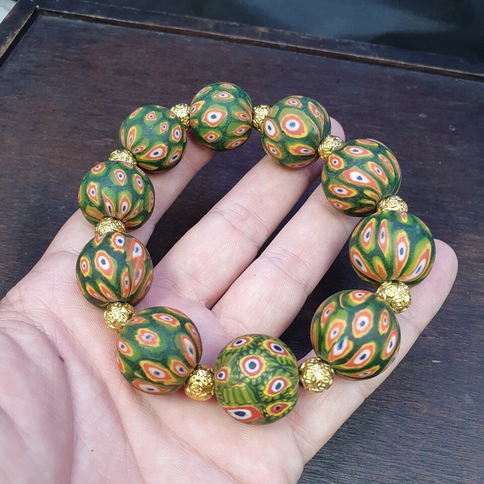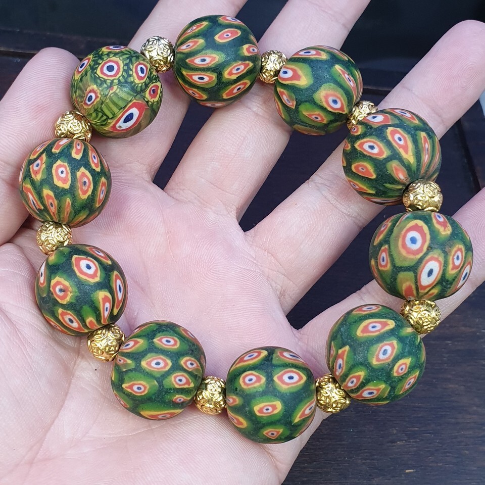 - Bracelet ancien vintage perles cent yeux style Gabri vert africain