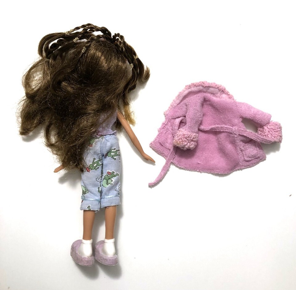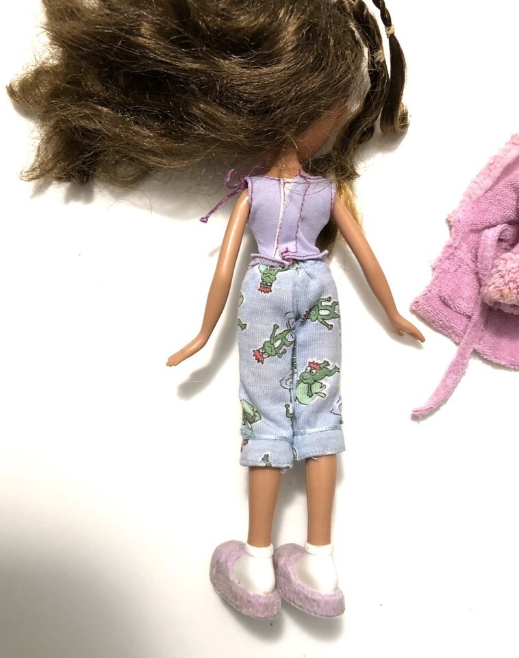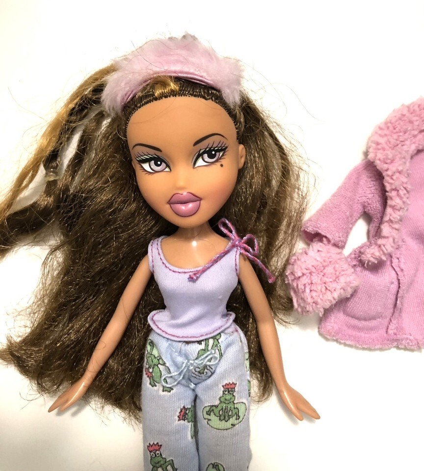 Bratz Doll Slumber Party Yasmin Doll With Pajamas Slippers, Pre-owned. She is missing some of the clothing and accessories, her head is dated 2001. The doll and clothing are in good, clean, pre-owned condition, the robe does need some stitching as you can see in the pictures. I do have more dolls and combined shipping is added to cart when you purchase multiple items at my shop.