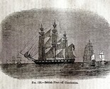 British Ships Fleet Charleston 1845 Woodcut Print Victorian Revolution War DWY9B