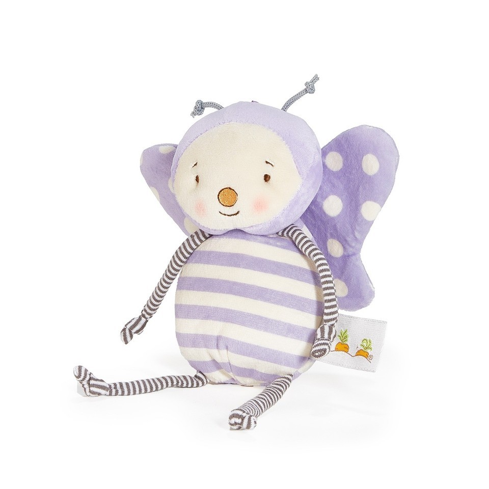 Her body features a delightful cream and lilac purple striped pattern, while her embroidered features capture her gentle and endearing personality. With dangly arms, legs, and antennas, Butterfly is always ready for a playful adventure and cuddly moments.