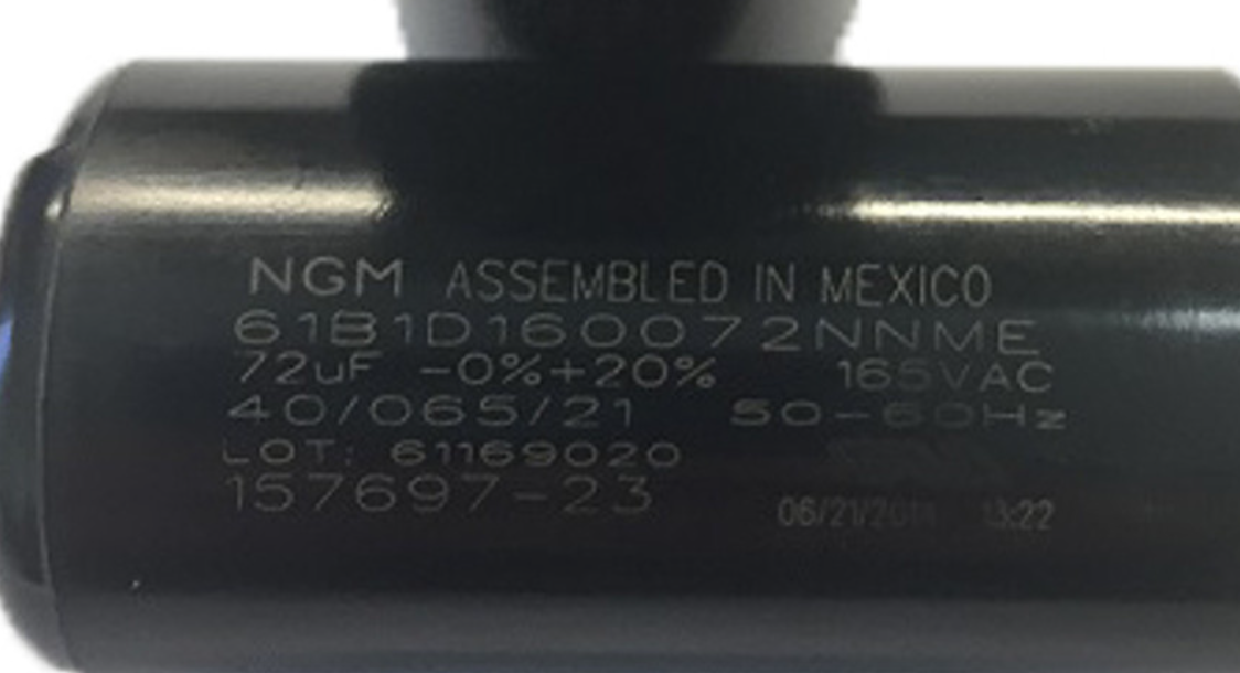 - CENTURY 157697-23, 61169020, 61B1D160072NNME, Start Capacitor, 72-88 MFD, 165V