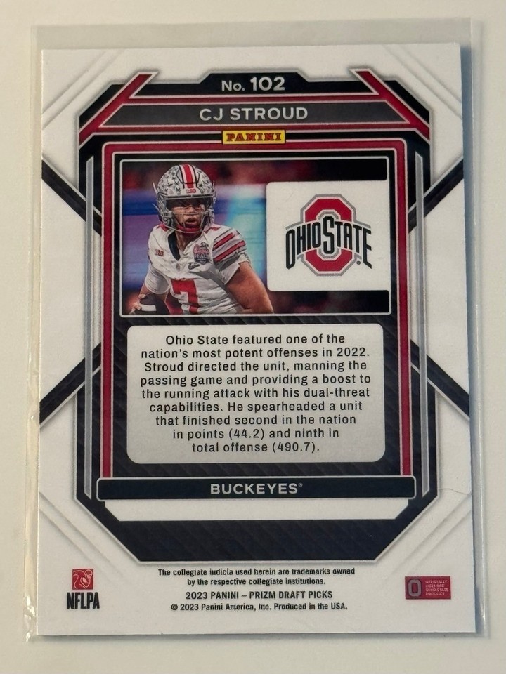 - CJ Stroud RC 2023 Panini Silver Prizm Rookie Ohio State/NFL Texams Football #102