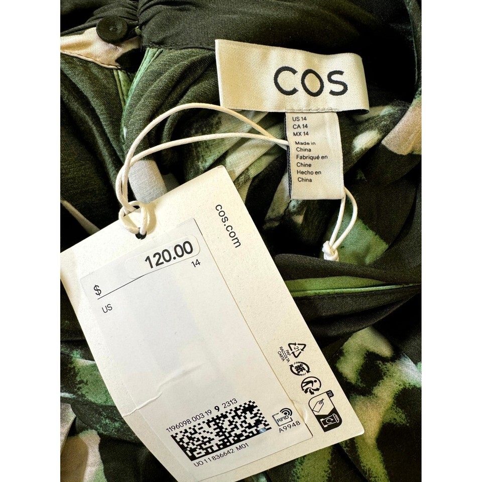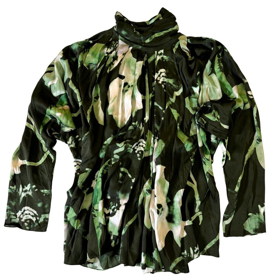 - COS Women's Green Floral High-Neck Pleated Oversized Blouse Size 14 NWT