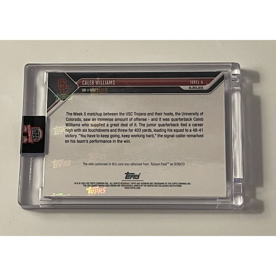 - Caleb Williams* 117/199 Trojans Game-Worn Shirt Relic 2023 Bowman U Now IN HAND!