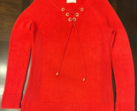 - Calvin Klein Red Lace-Up Knit Sweater Gold Grommets Women’s Size L Acrylic