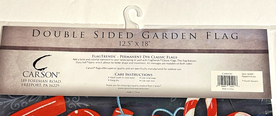 - Carson - Peppermint -Joy To The World - Garden Flag - 12.5 X 18 Inches Brand New