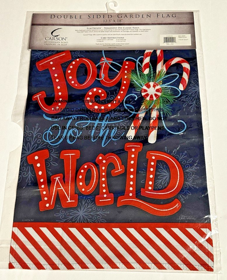 Carson - Peppermint -Joy To The World - Garden Flag - 12.5 X 18 Inches Brand New