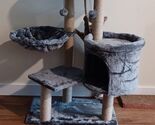 About this item ?Multifunctional Design? : Overall size:22.04"L x 12.6"W x 35"H. This cat cat tree is not only a climbing device, but also a comfortable sleeping platform, entertainment and play area, cozy cat condo and natural jute scratching posts. Meet the various needs of cats! ?Still Worried about Your Cat Scratching Your Furniture? ?: Three jute-covered posts are ideal for cats to scratch and stretch, helps the health of your cat's nails and keeping them away from your valuable curtains and furniture! ?Cozy Top Platform for Relaxation?: Our cat tree features a soft and comfortable top platform that provides the perfect spot for your cats to relax and catch some Z's. They'll adore lounging on this cozy platform day and night! ?Endless Fun with Hanging Balls?: Watch your kitties go wild with excitement! The cat tree comes with hanging balls that provide endless fun and entertainment,keeping your cats engaged and happy for hours. These pompon can be replaced easily, ensuring that the excitement never ends! ?Stability and Safety? :The safety of pets is the first consideration. Every detail has been carefully designed with no sharp edges, allowing your cat to play with peace of mind! ?Easy to Assembly?:Don?t worry about installation. Equipping this cat furniture with detailed instructions for quick and easy installation.