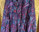 The Catherines Button Up Pintuck Shirt in size 1X is a versatile and stylish top perfect for various occasions such as travel, casual outings, and business meetings. The geometric pattern and multicolor design add a modern touch to the classic button-up style, making it a timeless piece for any wardrobe. Made from a blend of polyester and spandex, this shirt offers a comfortable fit with a hint of stretch for added flexibility. With long sleeves and a collared neckline, this shirt is suitable for all seasons and can be easily cared for with machine washing. Ideal for the fashion-forward woman looking for a blend of classic and modern style. 42" chest and 29" length