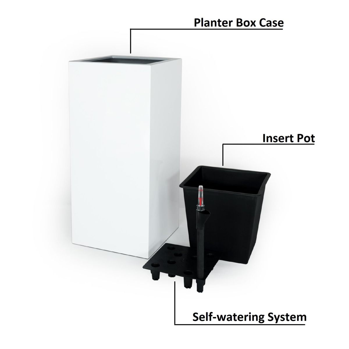 - Catleza 11" Self-Watering Square Planter Box - High - White