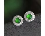These certified natural Guatemala jadeite earrings feature exquisite 6mm imperial green cabochons, glowing with vivid color and fine translucency. The jadeite stones are securely set in an elegant 18K gold-finished halo, surrounded by sparkling zircon accents. This design blends traditional charm with modern sophistication.