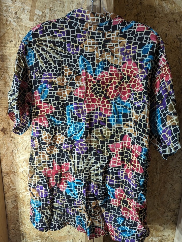 Update your wardrobe with this stunning Chico's Design button-up top. Made from 100% rayon, this lightweight and stretchy top is perfect for all seasons. The multicolor animal print pattern adds a touch of designer style, while the collared neckline and short sleeves create a sophisticated look. This top features a button closure and a slit for easy wear. Hand wash only to keep it looking its best. Perfect for summer, fall, or spring, this top is a must-have addition to your collection. 20" armpit to armpit and 16" armpit to waist