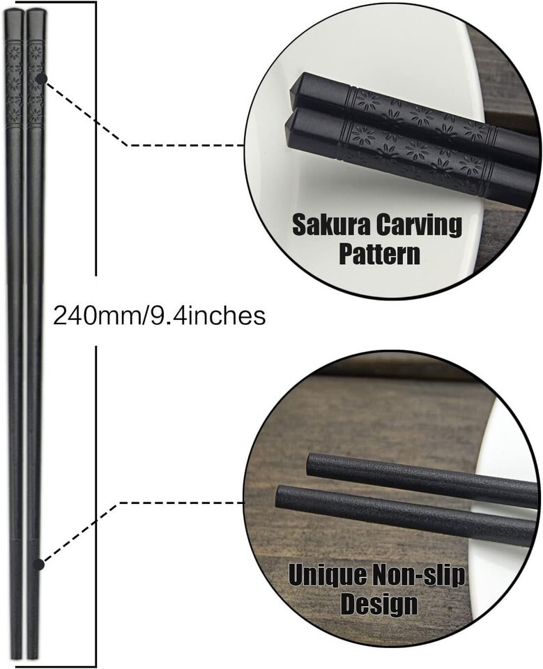 TYPICAL JAPANESE STYLE: The top of the chopsticks reusable is carved with a cherry blossom pattern, which is a typical Japanese style with strong Asian customs. You can feel different Japanese customs when you enjoy delicious food such as sushi and ramen or even General Tso?s Chicken.