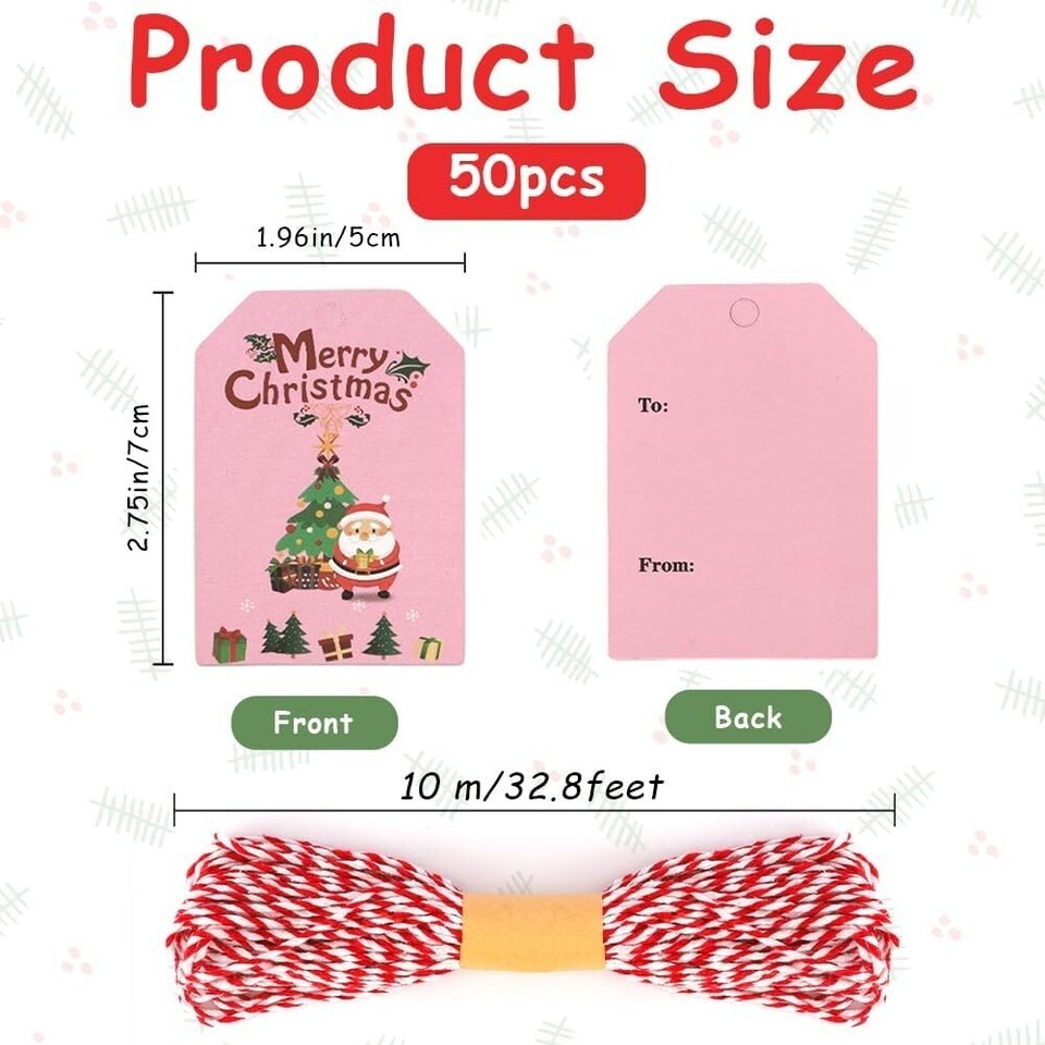 Package Includes: A total of 50 Pcs Christmas gift tags in a variety of different styles and comes with 1 roll of string, plenty of quantity to meet your different scenarios, each Christmas tag is 2.75 inch/7 cm in length and 1.96 inch/5 cm in width, the size is compact and suitable, these gift tags are perfect for Christmas gift decorations, Christmas tree decorations, and other festive decorations