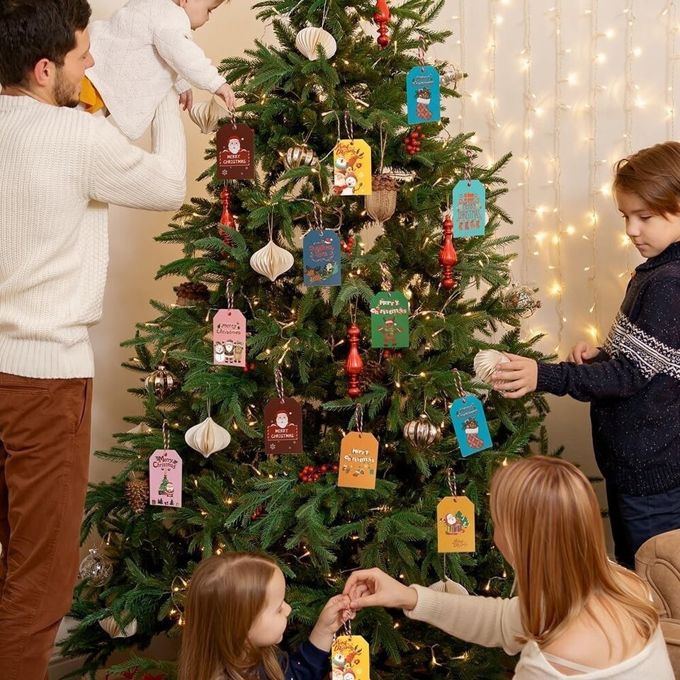 Unique Design: Christmas kraft gift tags come in a variety of different Christmas patterns, adding classic Christmas elements such as snowmen, Christmas trees, elk, bells, etc., which help to enhance the festive atmosphere, these holiday decorative tags are very cute and suitable for a wide range of Christmas decorations, and can also be used as stamp tags, price tags, scrapbooking and gift tags, etc