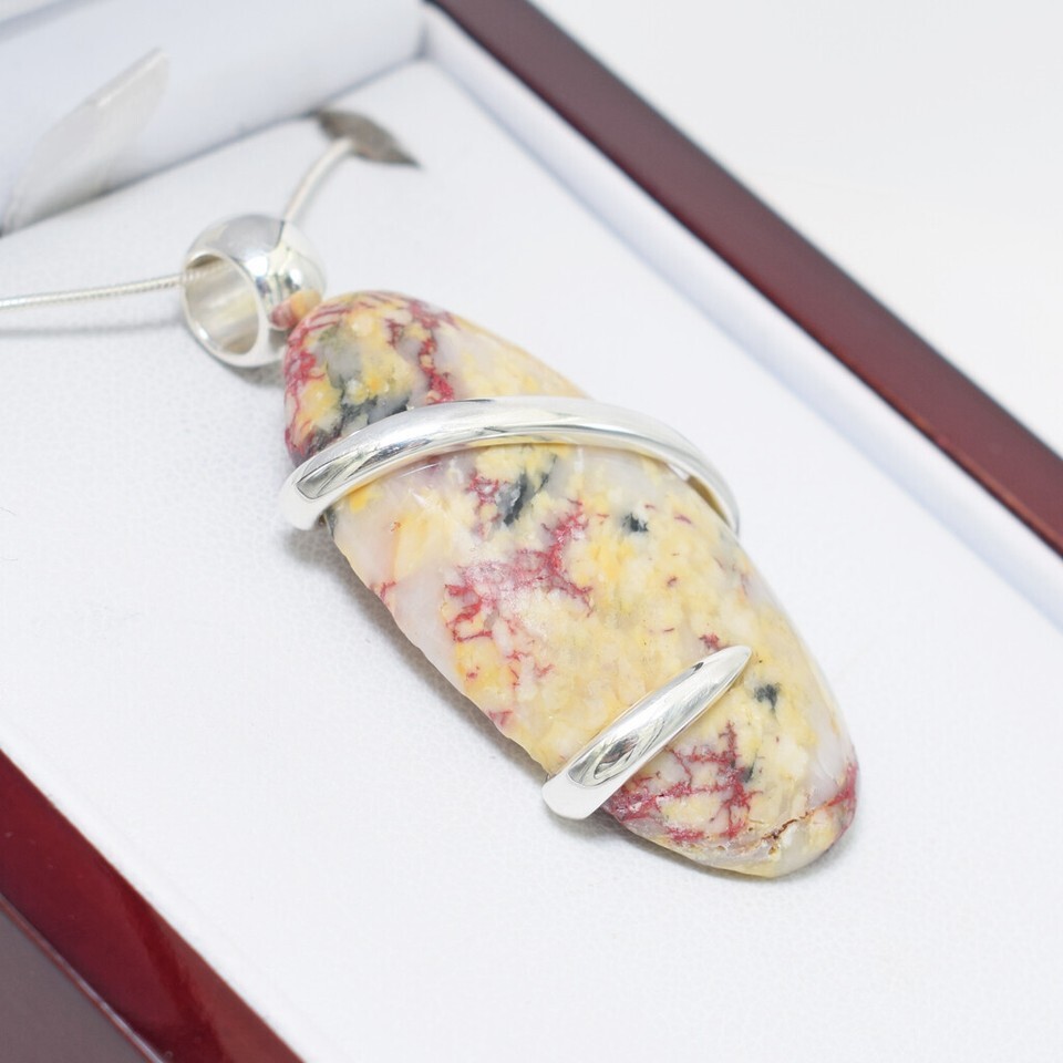 Each shipment includes: the pictured Cinnabar Crystal (46.8 cts) stone pendant, a sterling silver necklace, a wooden jewelry box, and a small cleaning cloth. Necklace Style: .9mm Italian Sterling Silver 925 Adjustable Round Chain 22"