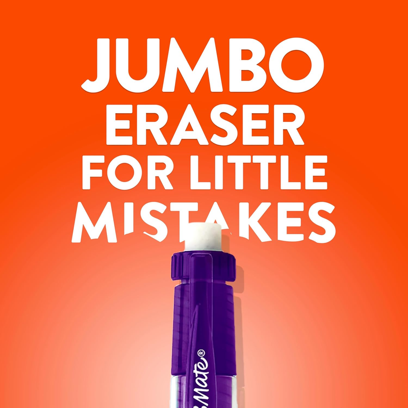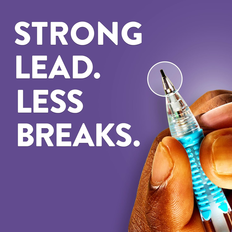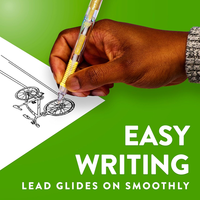 Paper Mate Clearpoint mechanical pencils have the feel of a pen and the look and performance of a pencil, making them ideal for a variety of writing and art uses. These pencils feature bright, colorful barrels that create a fun writing experience. With a convenient side-click advance mechanism on the barrel, you?ll be able to load lead without losing your grasp. The comfortable grip and the wider fit and feel of each pencil cause less stress and strain on your hand. Meanwhile, the jumbo eraser makes erasing clean and easy. Each order includes 6 mechanical pencils.