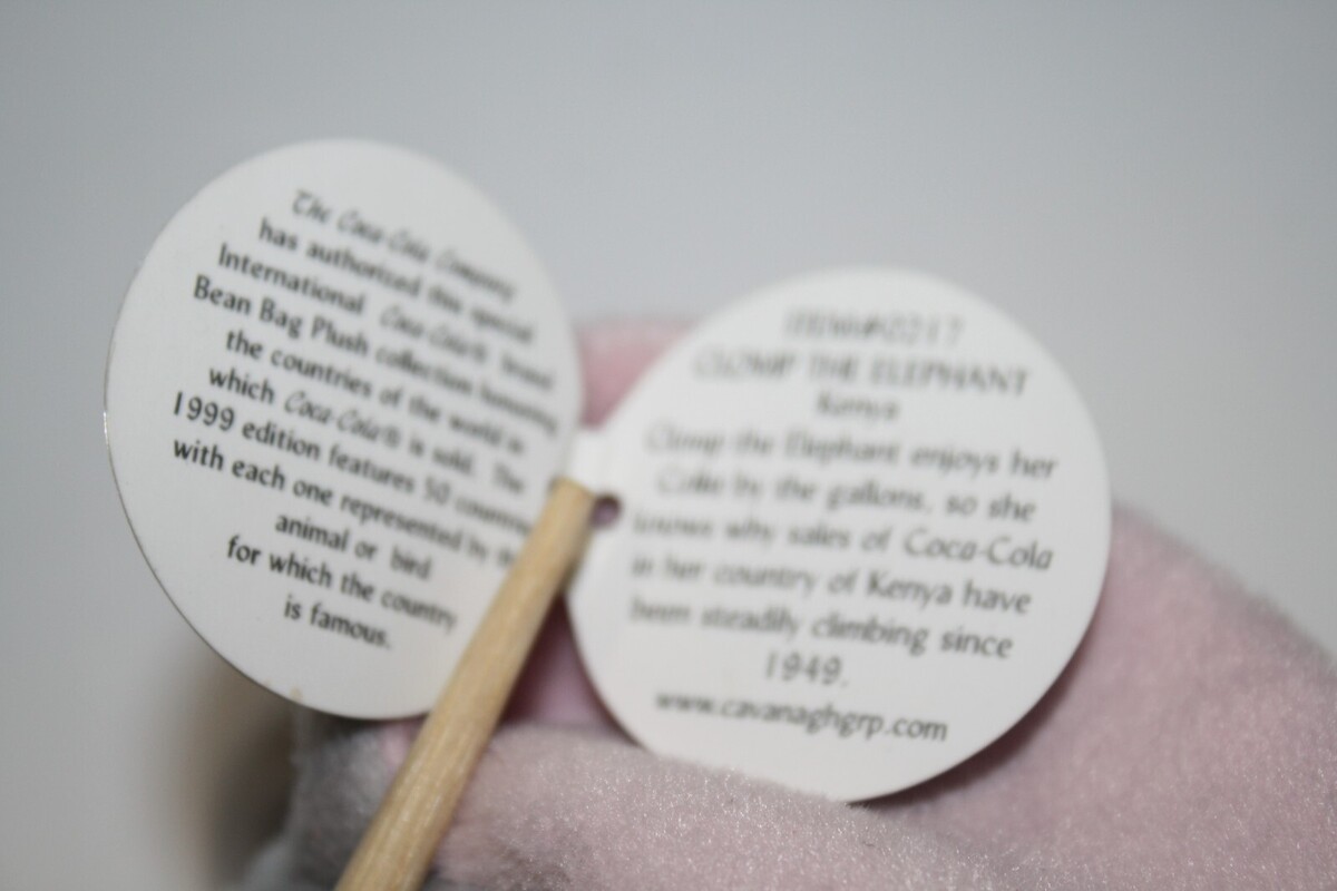 Clomp the Elephant 6" Coca Cola International Collection Country of Kenya Plush Bean Bag 1999 Collectible Soft Toy Stuffed Animal New with Tag #0217