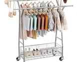 - Clothes Rack, Rolling Clothing Garment Rack with 2 Hanging Rods and Storage Bas