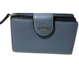 Coach Snap Wallet Shiny Pebbled Leather Small Clutch Blue w/Zip Credit Card DL