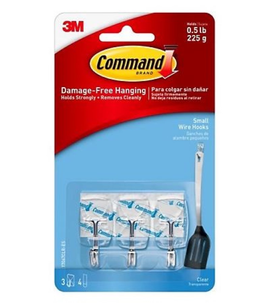 ORGANIZE DAMAGE-FREE - Say goodbye to holes, marks, or sticky residue on your walls, doors, cabinets, or closets; Command Hooks by 3M are easy to use and help keep your walls looking beautiful NO TOOLS REQUIRED- Hang hats, calendars, keys, measuring spoons, cleaning tools, jewelry, and accessories where you want without nails or a hammer. Includes metal wire toggle feature for versatile hanging STRONG AND VERSATILE- Command Clear Wire Hooks include hold strongly on a variety of smooth indoor surfaces including painted walls, smooth ceilings, finished wood, glass, tile, and metal REMOVES CLEANLY- Reorganize when inspiration strikes; These wall hooks leave no sticky adhesive behind; Perfect to use inside cabinets and closets, in your college dorm, apartment, home, and office