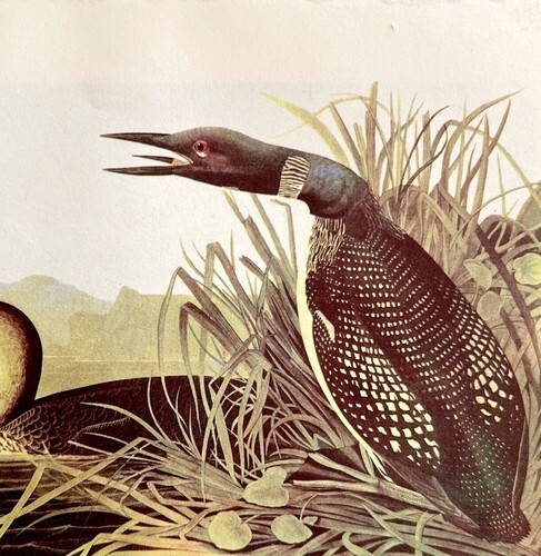 Common Loon Bird Lithograph 1950 Audubon Antique Art Print Diving Duck DWP6D