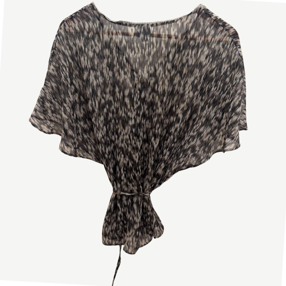 Stylish and versatile belted kimono in black and gray, perfect for layering over any outfit. The sheer design adds an elegant touch, while the medium fit ensures comfort and style. Ideal for casual or semi-formal occasions. ? Sheer kimono style ? Belted design ? Black gray color ? Comfortable medium fit ? Versatile layering piece Waist 19 in Length 26 in Features: ? Belted Size: Womens M Condition: Pre-Owned Good