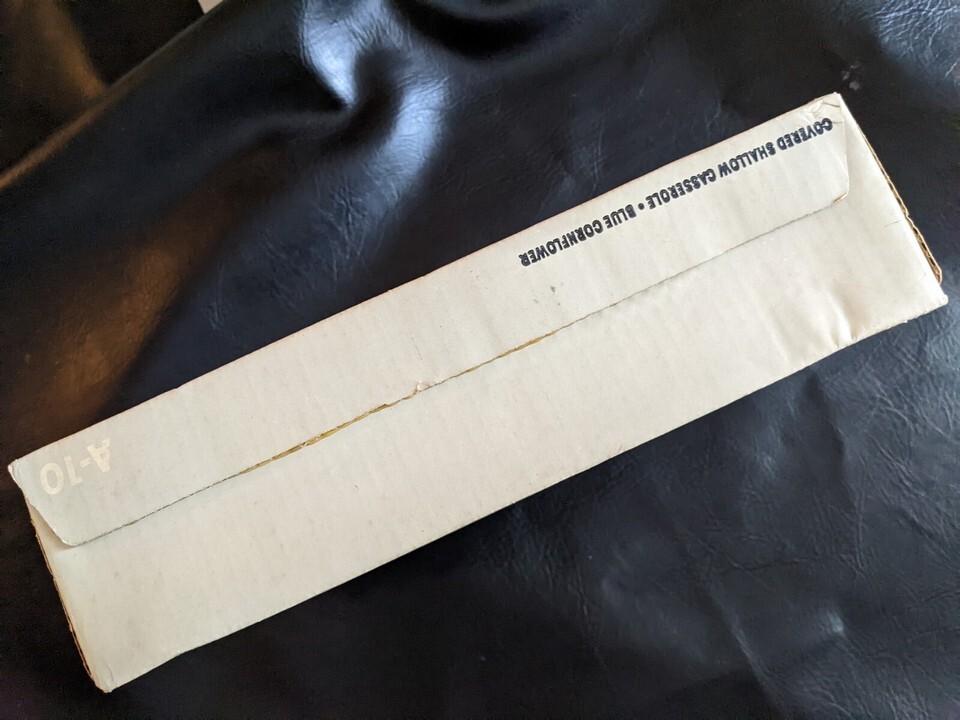 Up for sale is a new in box Corning Ware 1984 2.5 Qt Lt Blue Cornflower Shallow Covered Casserole A-10.