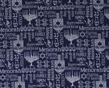 Primary image for Cotton Happy Hanukkah Menorah Jewish Faith Navy Fabric Print by the Yard D501.56