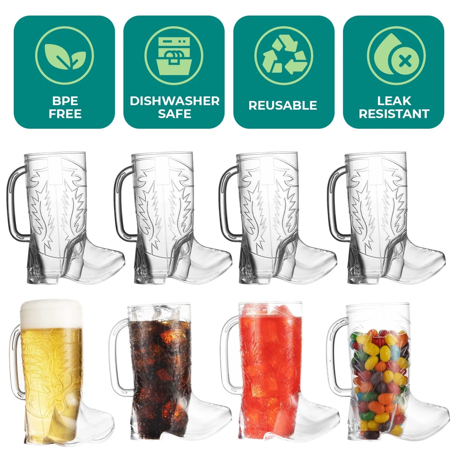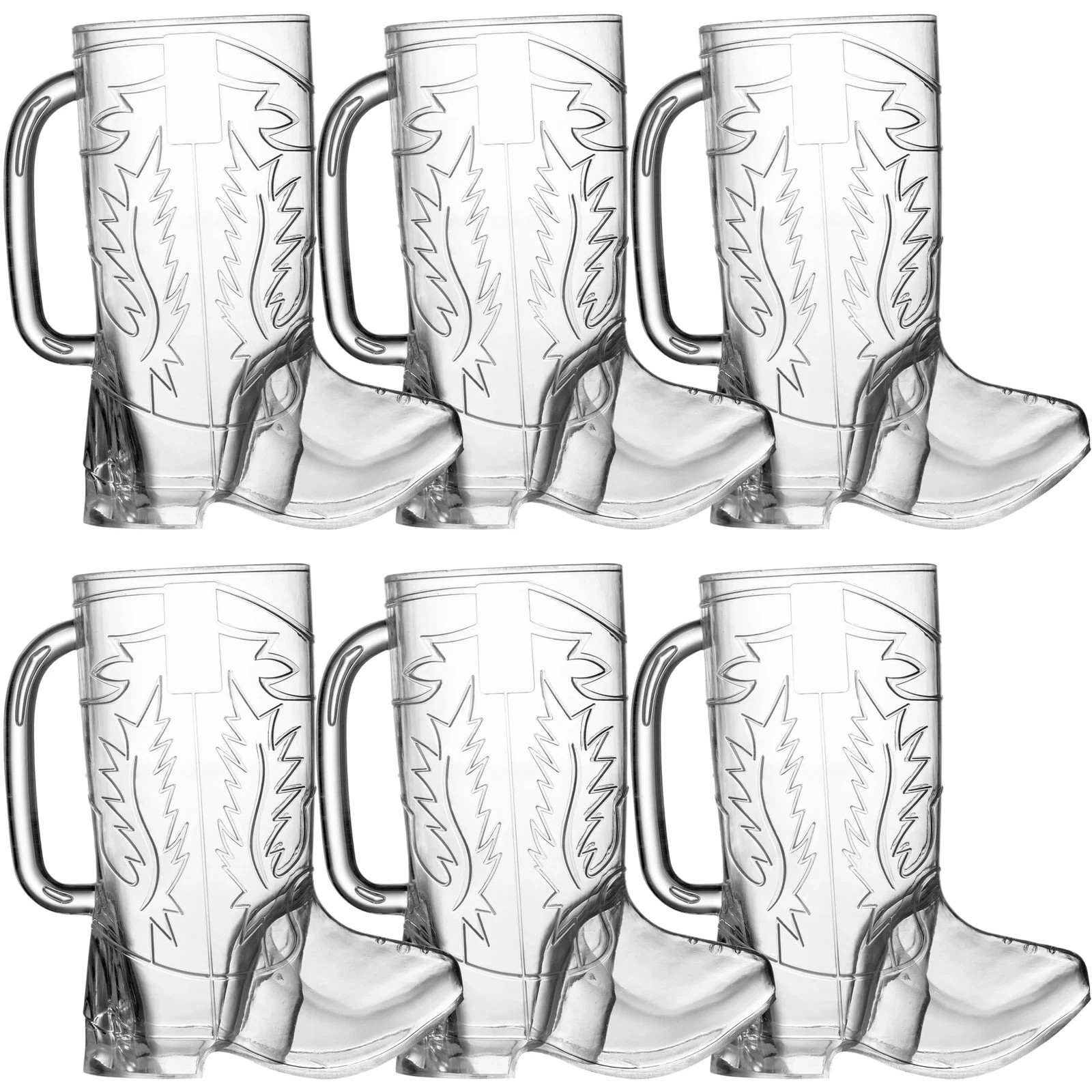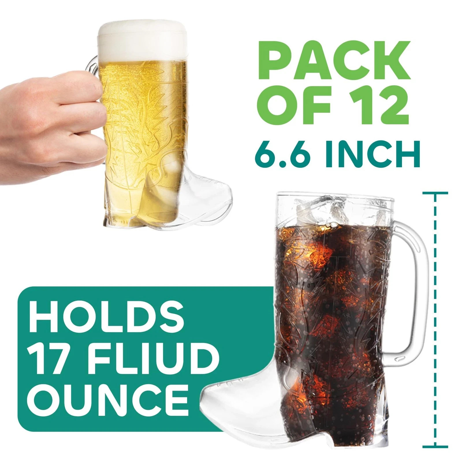 Premium party supplies value pack: Get 12 clear cowboy boot mugs measuring 6.5 inches tall with generous 17oz capacity ideal for western party cups serving mixed drinks, margaritas, punch, sodas beverages at large gatherings or events