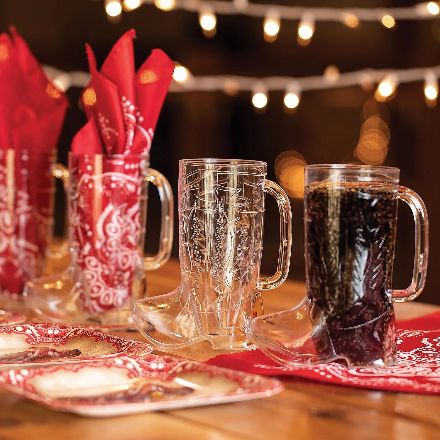Cowboy Boot Cups - (Pack of 12) 17oz Drink Mugs, Reusable Plastic Rodeo Party