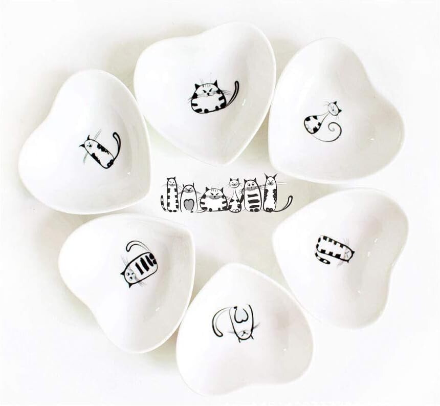 Cute Cat Ceramic Side Sauce Dishes Mini Heart shape 2.95 X 2.75 X 1 INCH