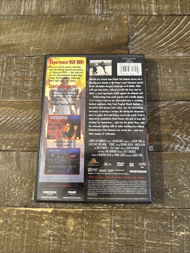 The Cyborg DVD is a DVD format that contains the movie "Cyborg" in digital form. This product allows fans and viewers to enjoy the film at home on their DVD player or streaming device. With the movie title being "Cyborg," viewers can immerse themselves in a futuristic story that follows a cyborg detective as he navigates a high-tech world filled with crime, betrayal, and excitement. Overall, the Cyborg DVD offers a convenient and enjoyable viewing experience for fans of the sci-fi genre.