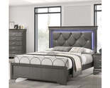 - Dark Gray Faux Leather Tufted Headboard 1pc Queen Size Bed W LED Bedroom Furnitu