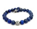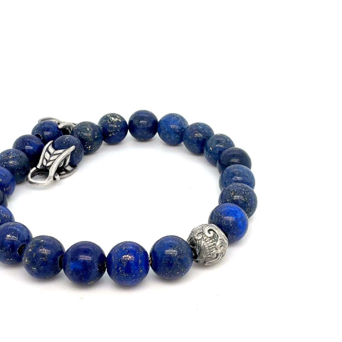 - David Yurman Lapis Lazuli Carved Beads Bracelet 8.5" 8 mm Silver Estate DY706
