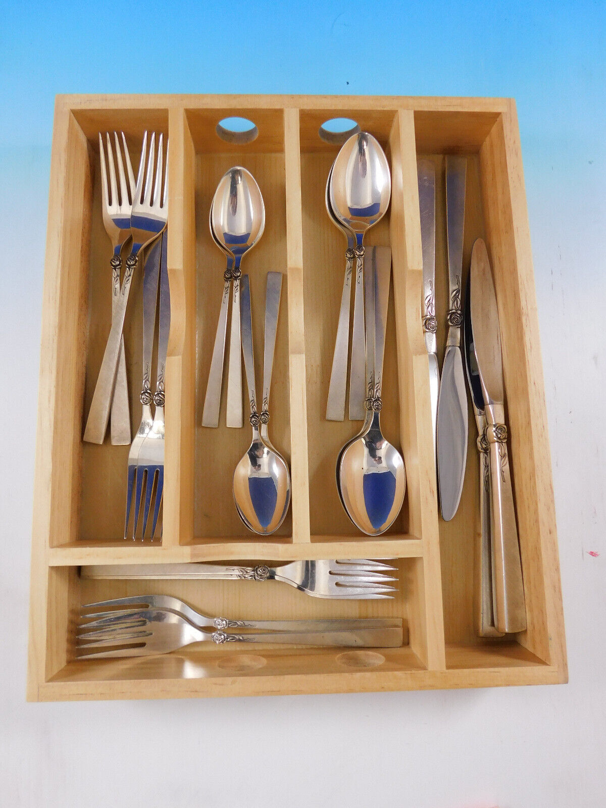 - Dawn Rose by International Sterling Silver Flatware Set Service 20 Pieces Floral