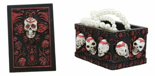 - Day Of The Dead Red Floral Sugar Skull Small Stash Jewelry Box 4.25"L Figurine