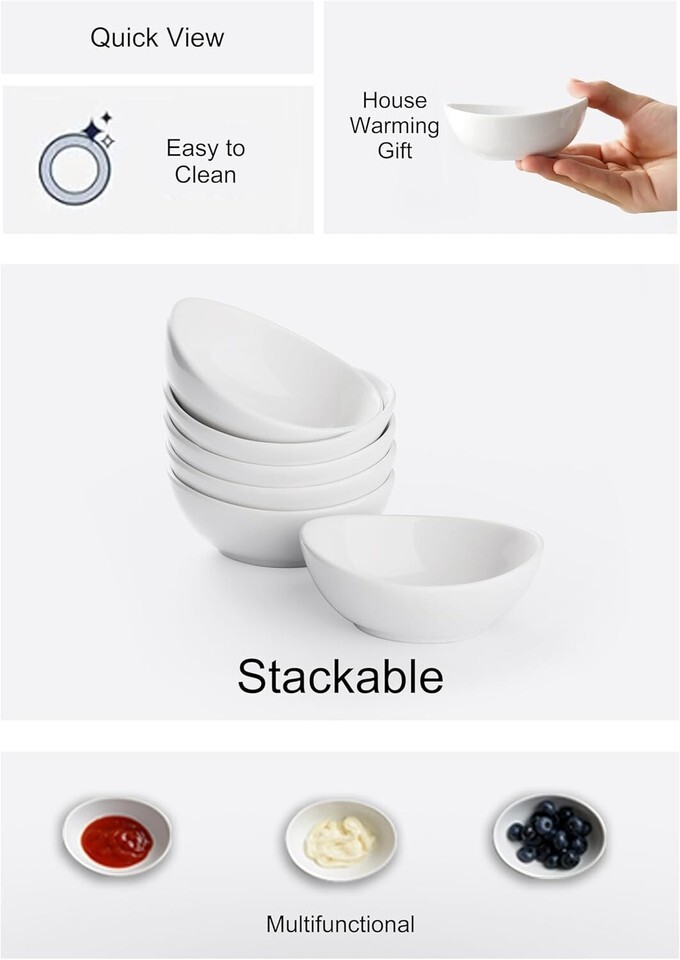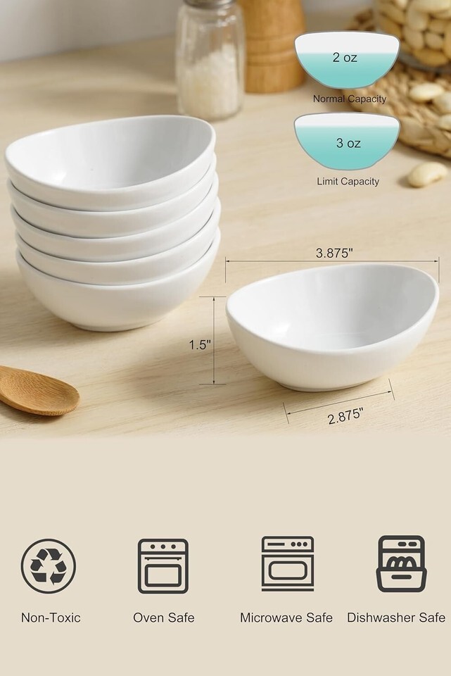 Dipping Bowls 3 OZ Small Serving Bowls Set of 6 Appetizer 3.875 x 3 x 1.5 in