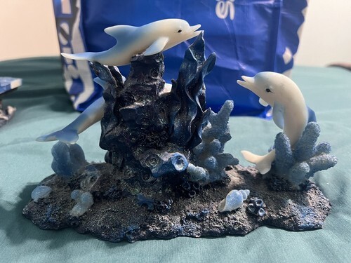 No idea what brand this dolphin statue is. 10? long x 4? wide x 6? tall size is an estimate. I have nothing to measure this with. Great condition but dusty