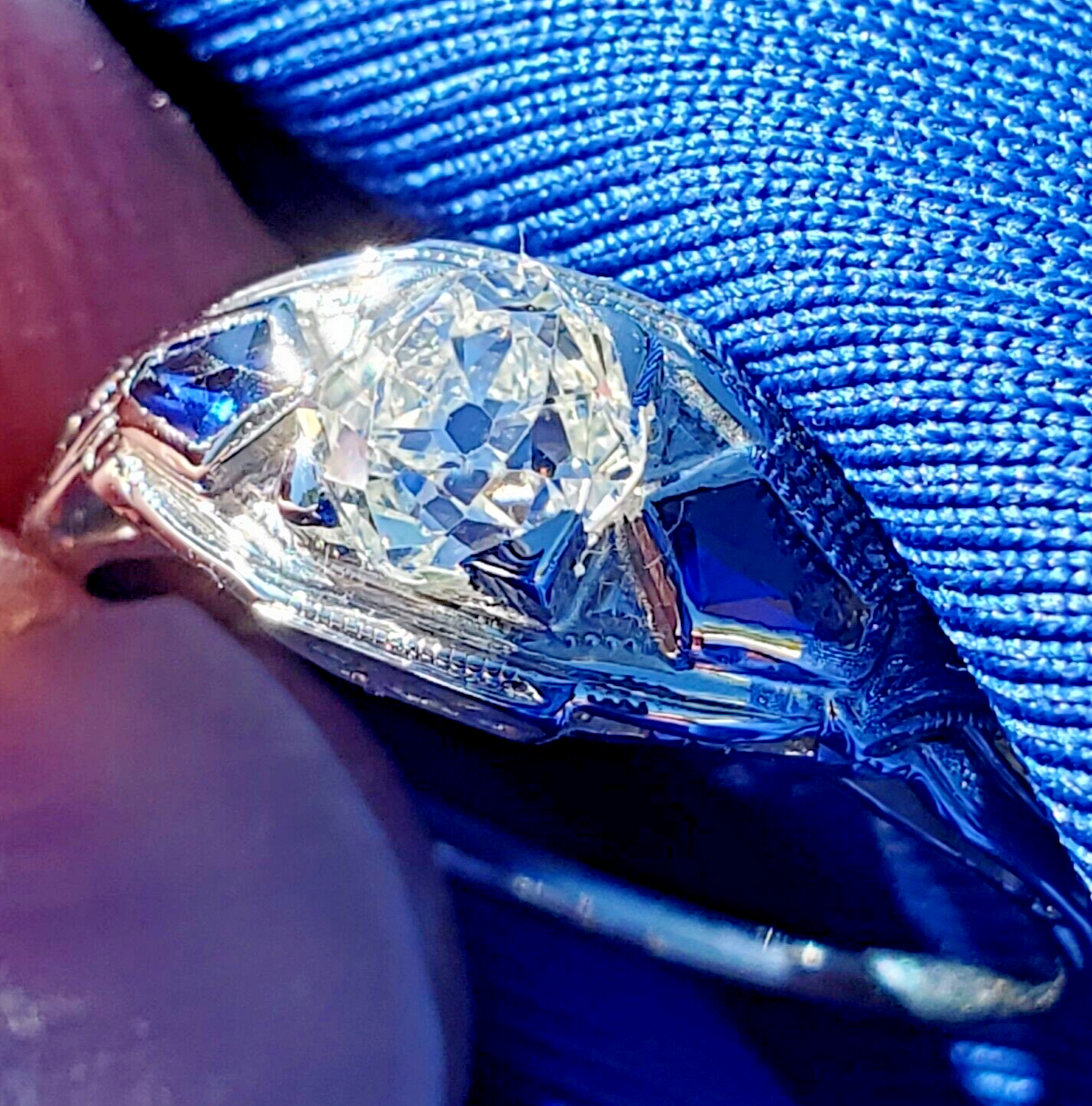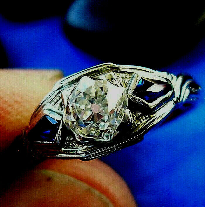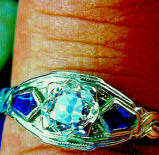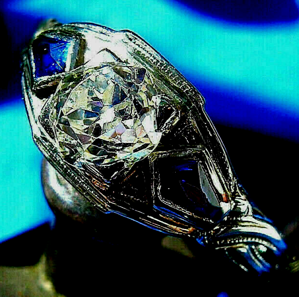 VINTAGE DIAMOND SAPPHIRE GATSBY ERA SOLITAIRE.