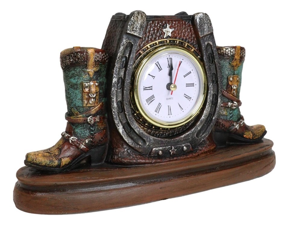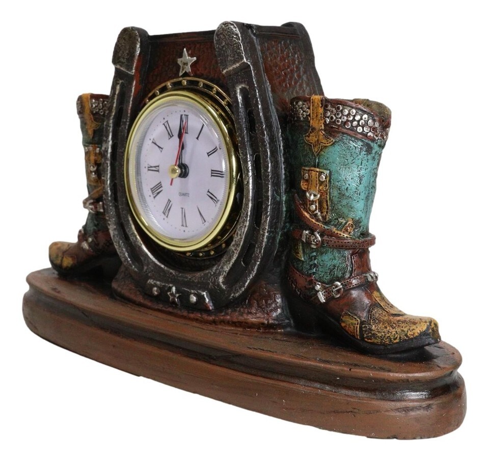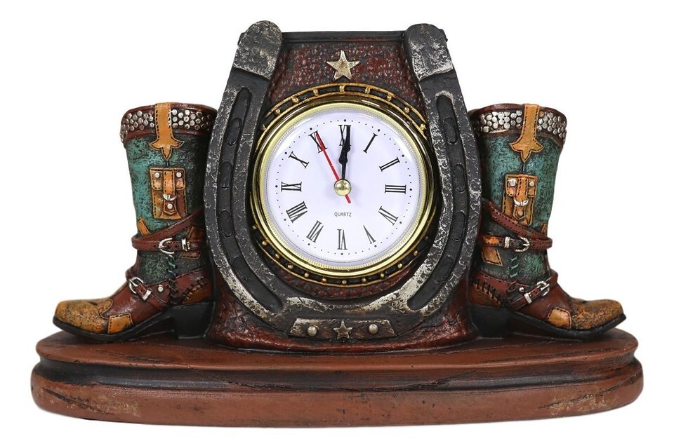 - Ebros Country Western Star Lucky Horseshoe And Cowboy Boots Analog Desktop Clock